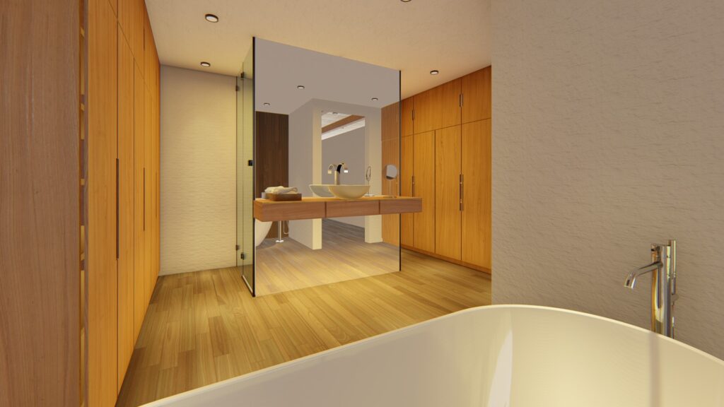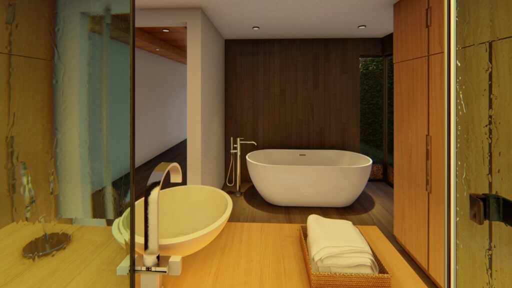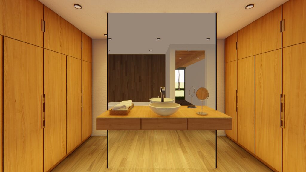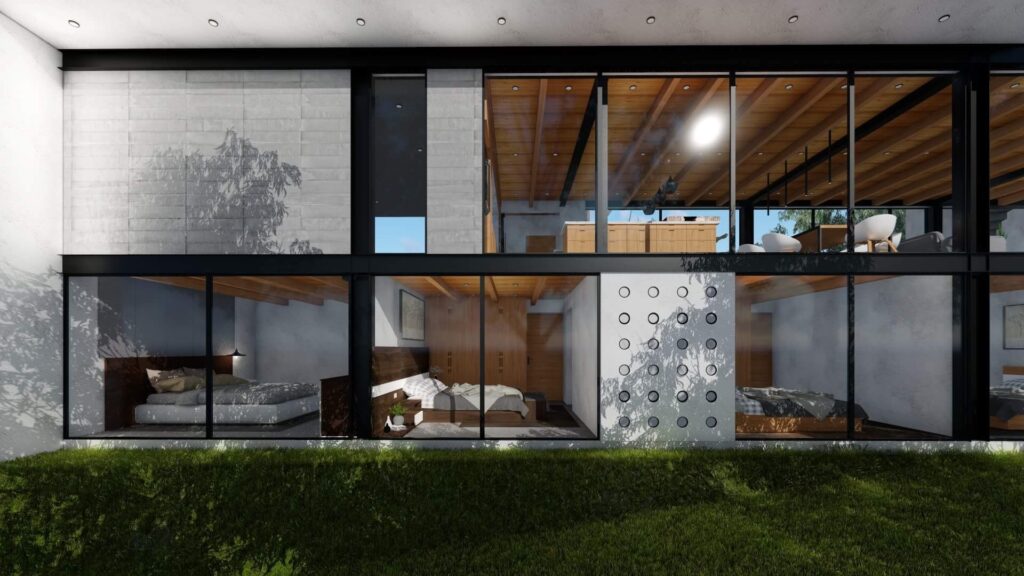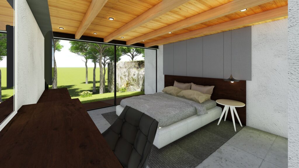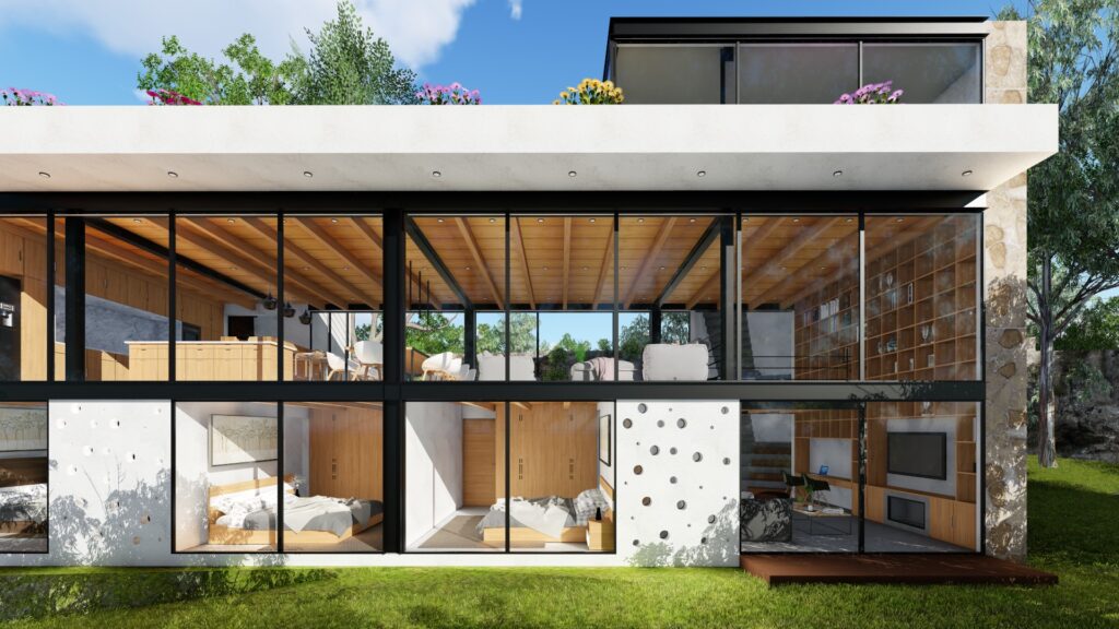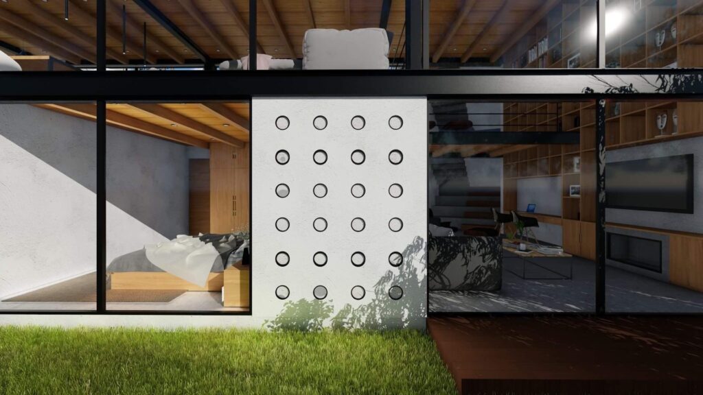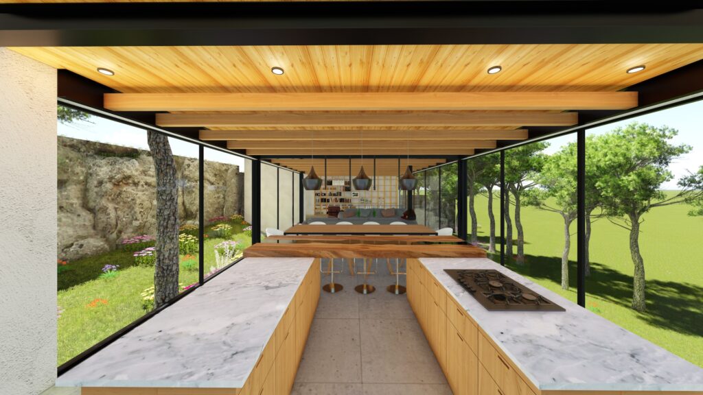 El terreno con desnivel pronunciado se convirtió en el punto de partida para la creatividad. La casa, diseñada en forma de “U”, abraza y respeta la topografía única del lugar. Inspirada en las viviendas tradicionales de la región, la distribución en forma de “U” permite la creación de un patio central, el corazón de la casa, que actúa como un núcleo central alrededor del cual se desarrollan todos los espacios.