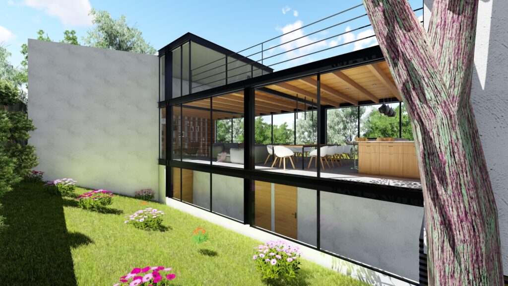 El pateo central, inspirado en la arquitectura tradicional de San Cristóbal de las Casas, se convierte en el epicentro del hogar. Es el alma de la casa, conectando visualmente todas las áreas y proporcionando una sensación de unidad y coherencia.