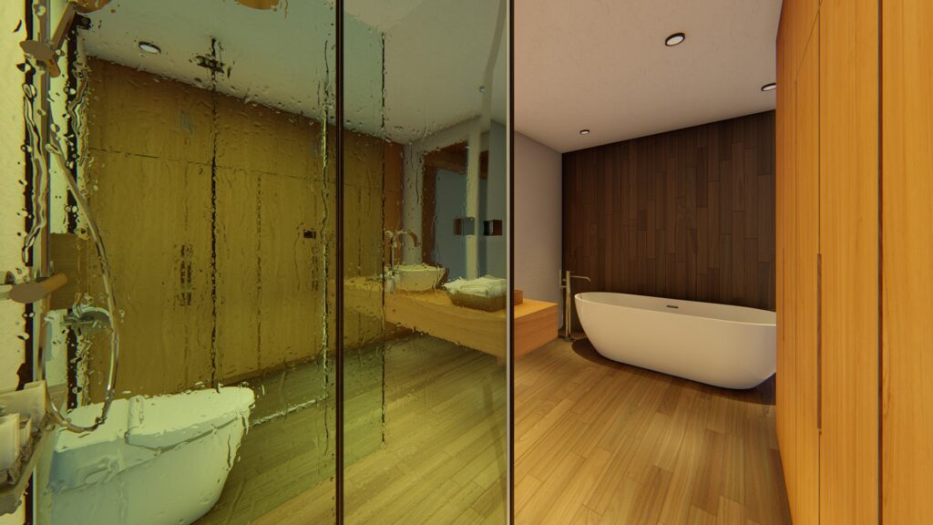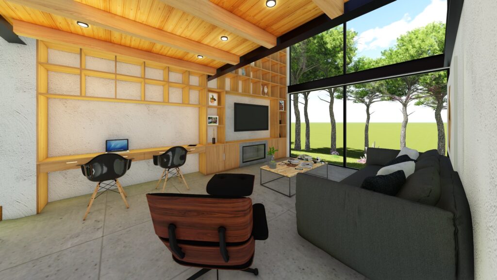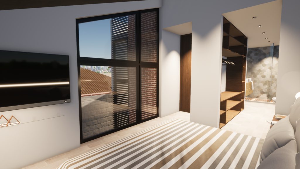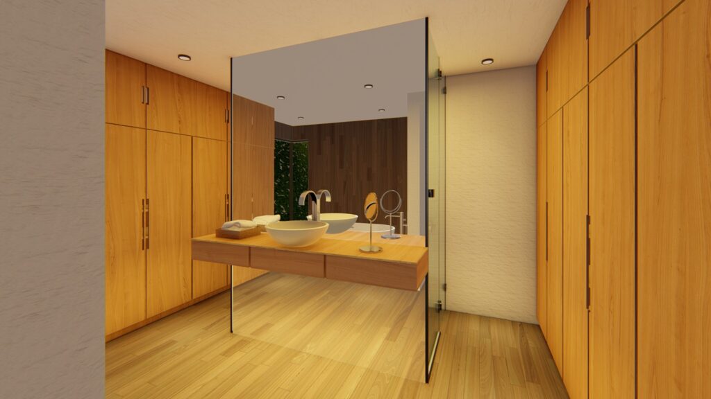 El diseño interior refleja la vida moderna de la familia. La cocina, el comedor y la sala coexisten en una sección abierta, fomentando la interacción y la conexión familiar. Una extensa área de televisión, el epicentro de entretenimiento, es el lienzo perfecto para las noches familiares y eventos sociales. Este espacio generoso se conecta sin problemas con las áreas verdes circundantes, permitiendo una transición fluida entre el interior y el exterior.