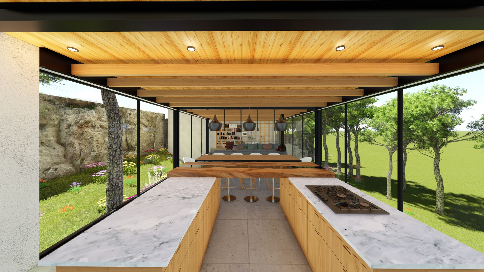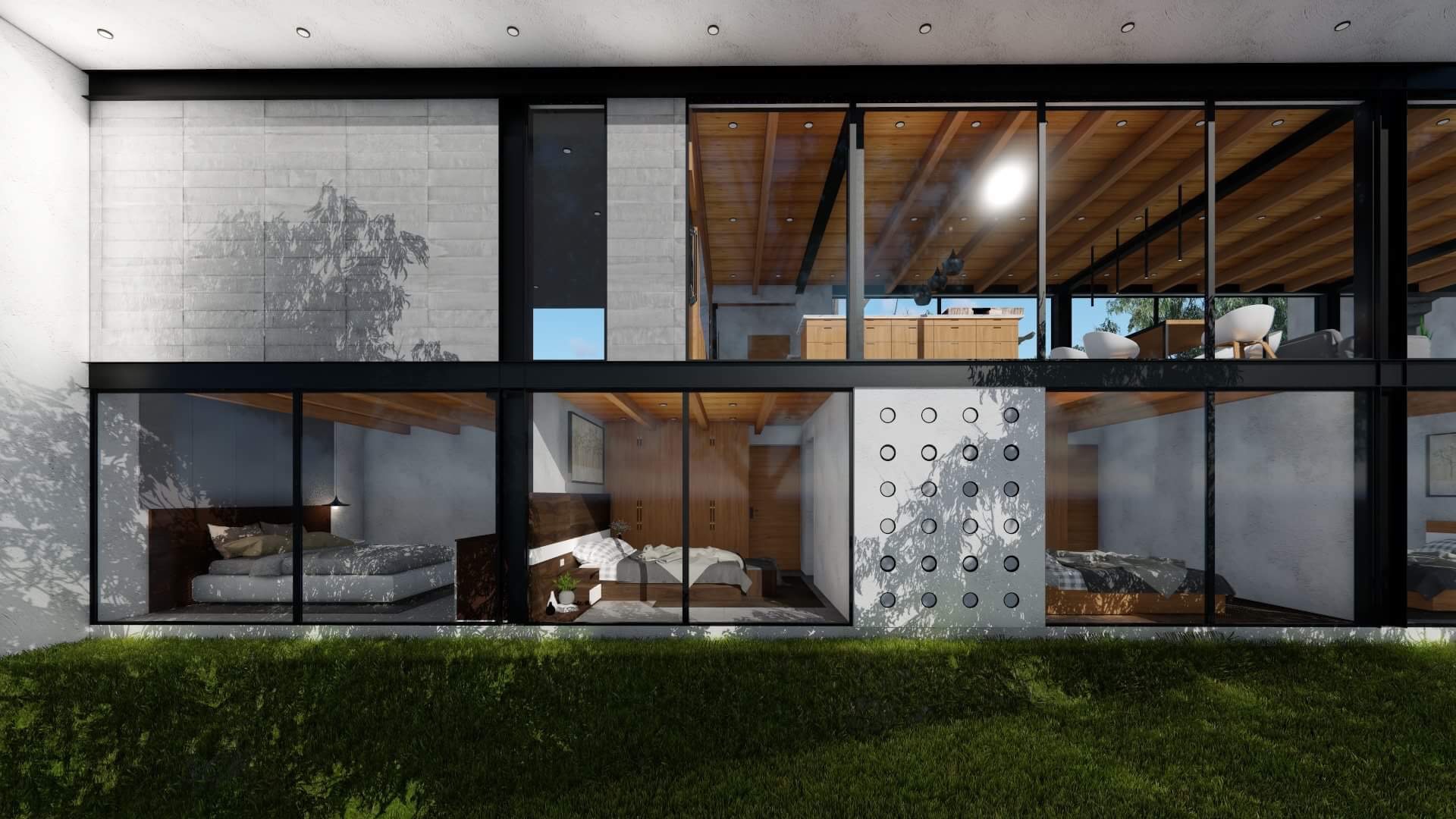 El desafío del desnivel condujo a una inversión única de los espacios convencionales. El segundo piso, antes destinado a áreas privadas en una casa típica, se transformó en el área social. Aquí, la cocina, el comedor y la sala se benefician de las vistas panorámicas y la conexión directa con las áreas exteriores. El primer piso, a su vez, se convirtió en el área privada que alberga las habitaciones familiares, proporcionando un santuario tranquilo separado de la actividad social.